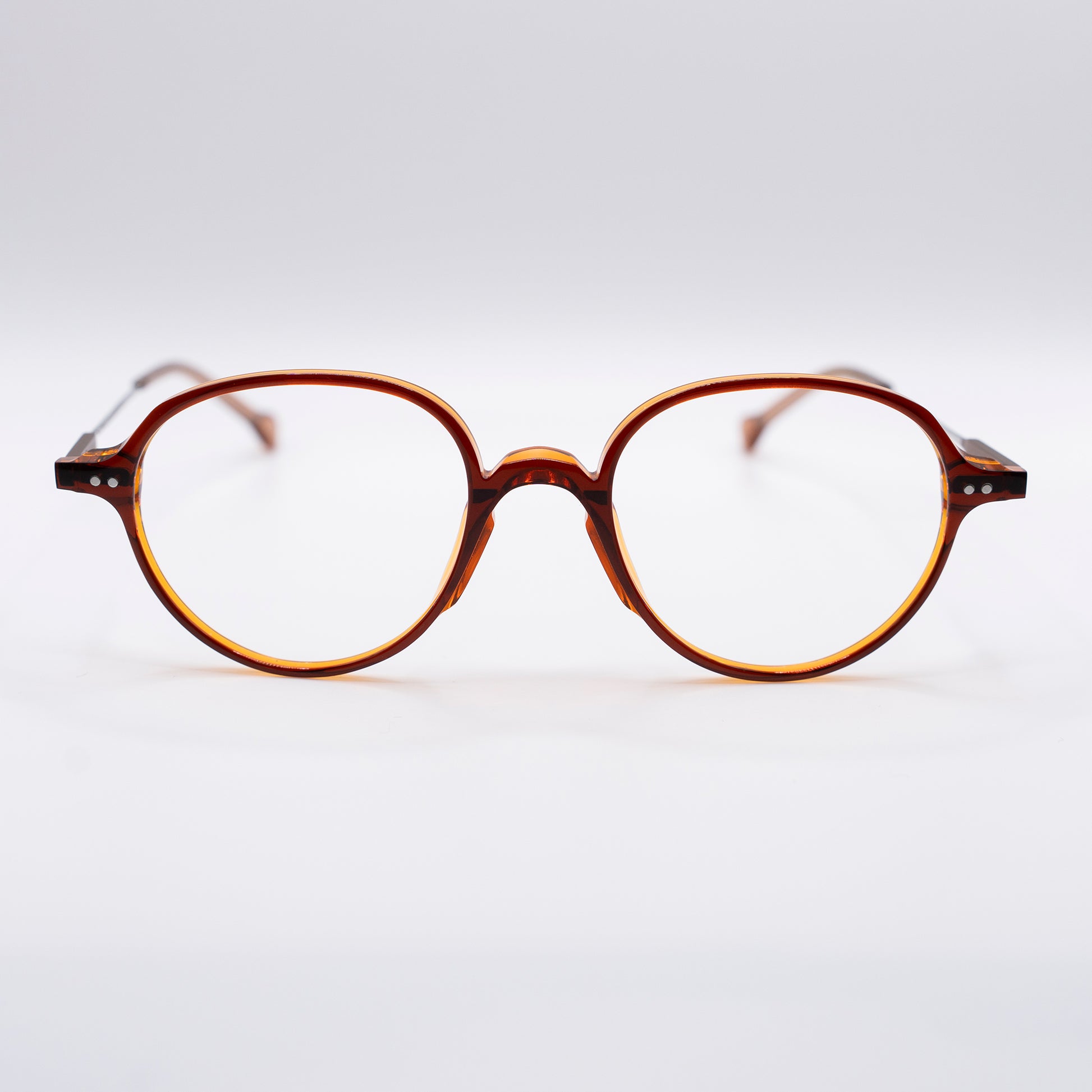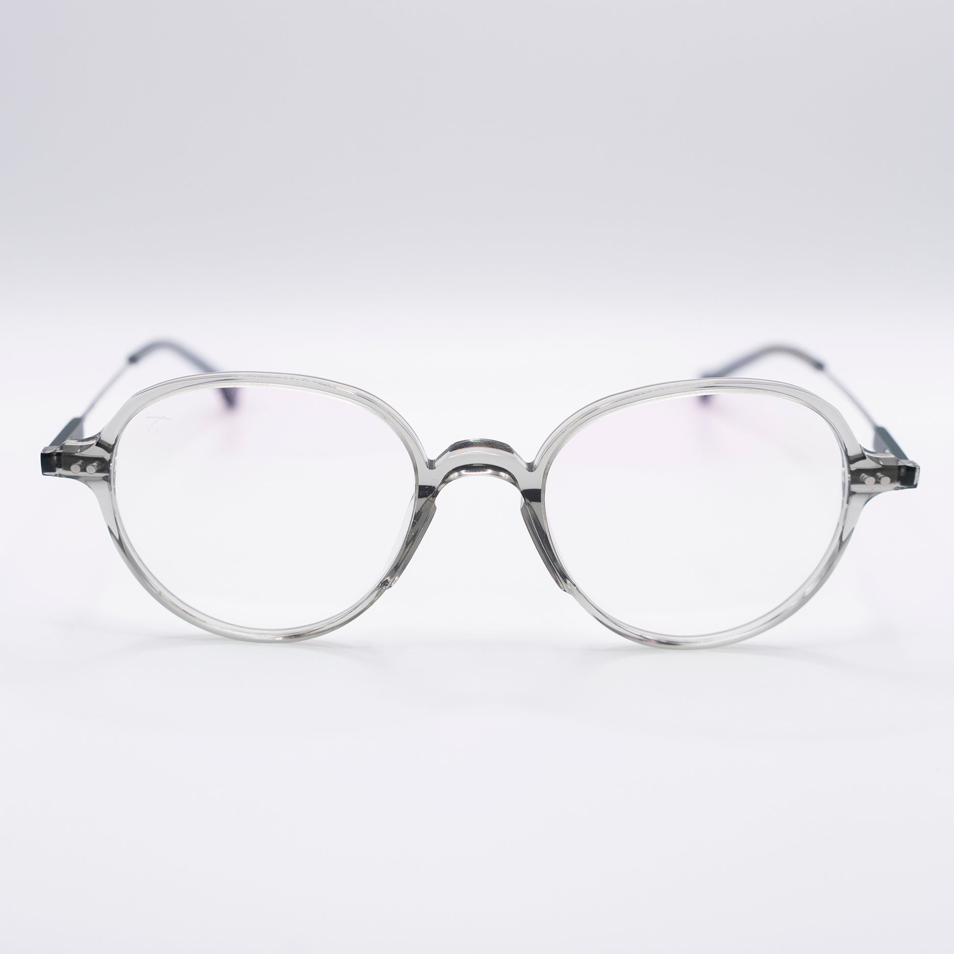 Es una gafa con forma ovalada que combina la pasta del frente con varillas de titanio. destaca por su ligereza y su forma clásica.